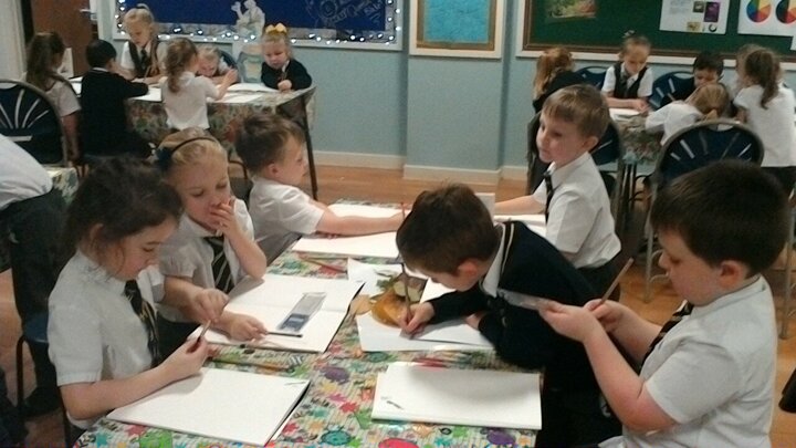 We loved drawing leaves in art today.