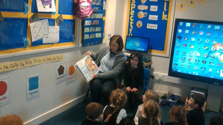 Today both Reception classes had a Mystery Reader.