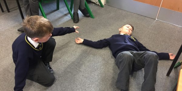 2 February 2018 To help write speech sentences Poplar have been acting out a scene from Varjak Paw. Acting out Varjak Paw