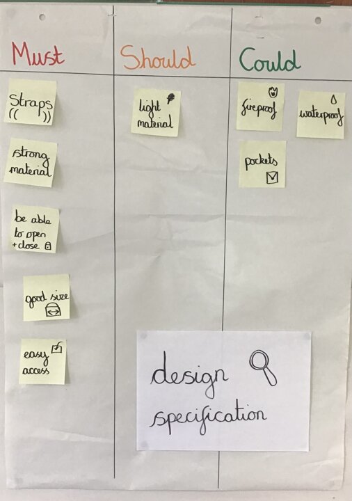 Year 4 are designing and creating a bag for the fable, Beowulf. As a class, we discussed our understanding of the character and what he might need to carry in his bag. Based on their knowledge, we generated some ideas for a design specification and refined these in order of importance. We used a range of sources to research what products already exist and how they differ.