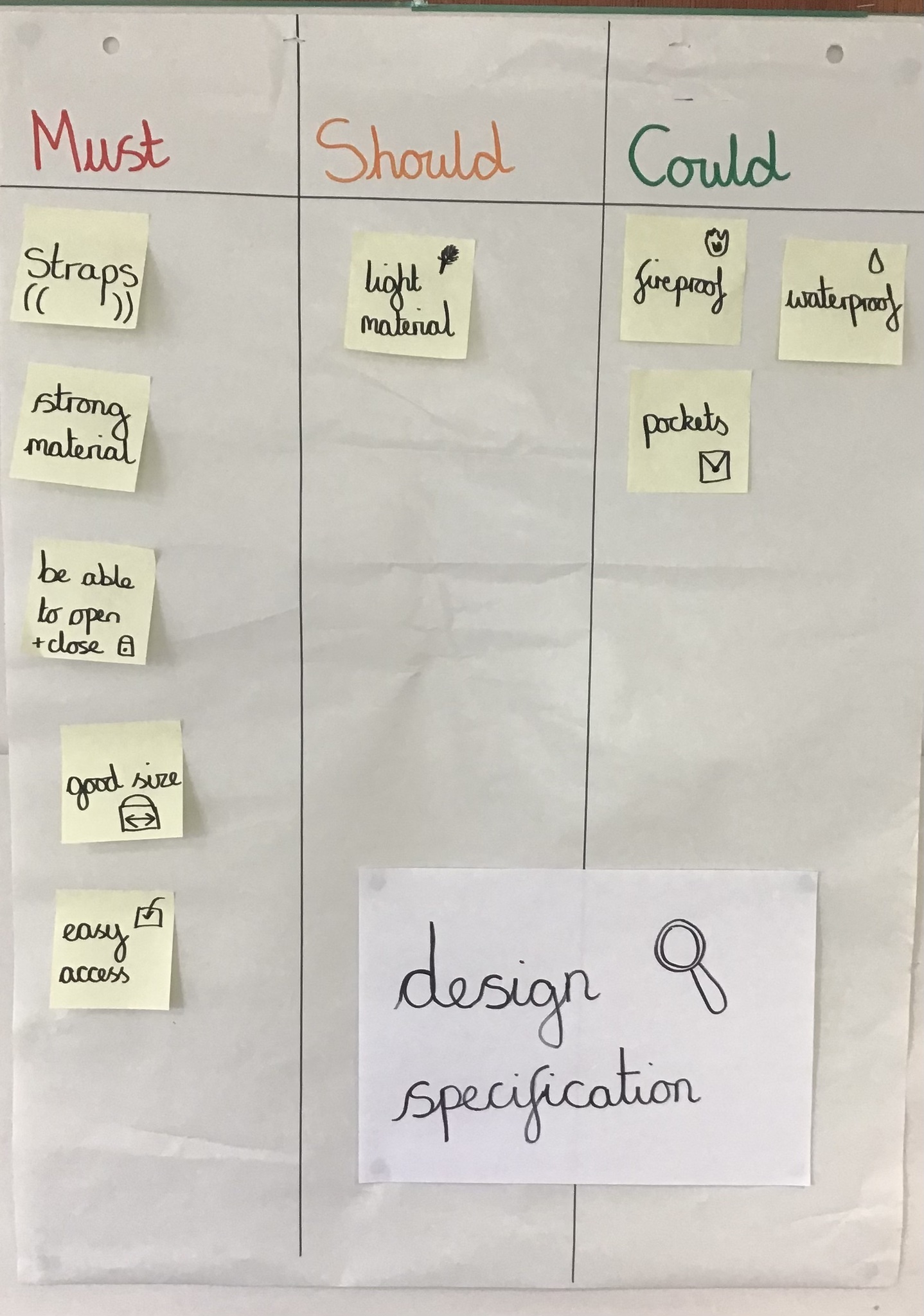 We then discussed the features and materials they should include, might include and will not include based on their research so that they could identify the essential and desirable features. We sketched and labelled a few designs.