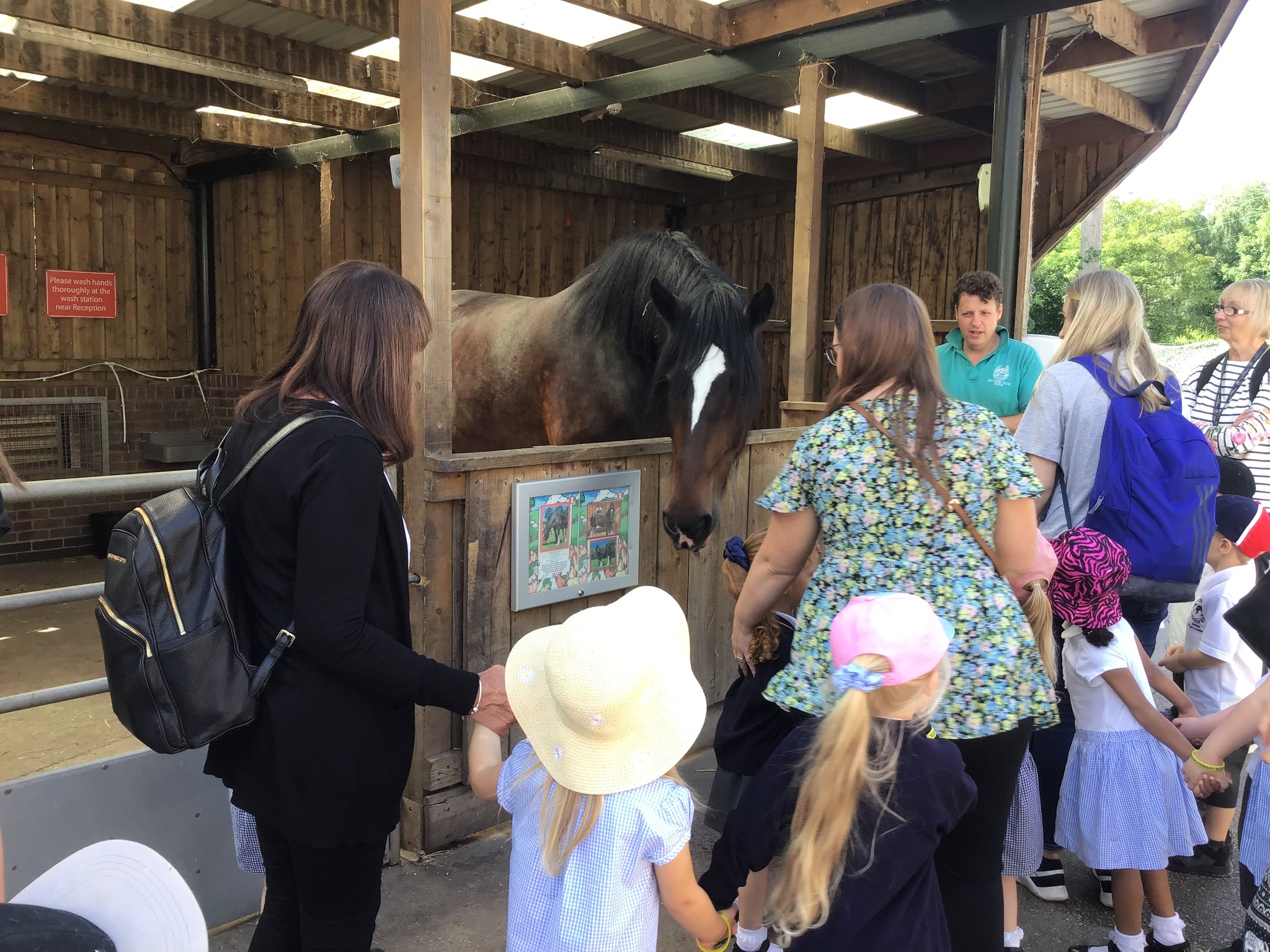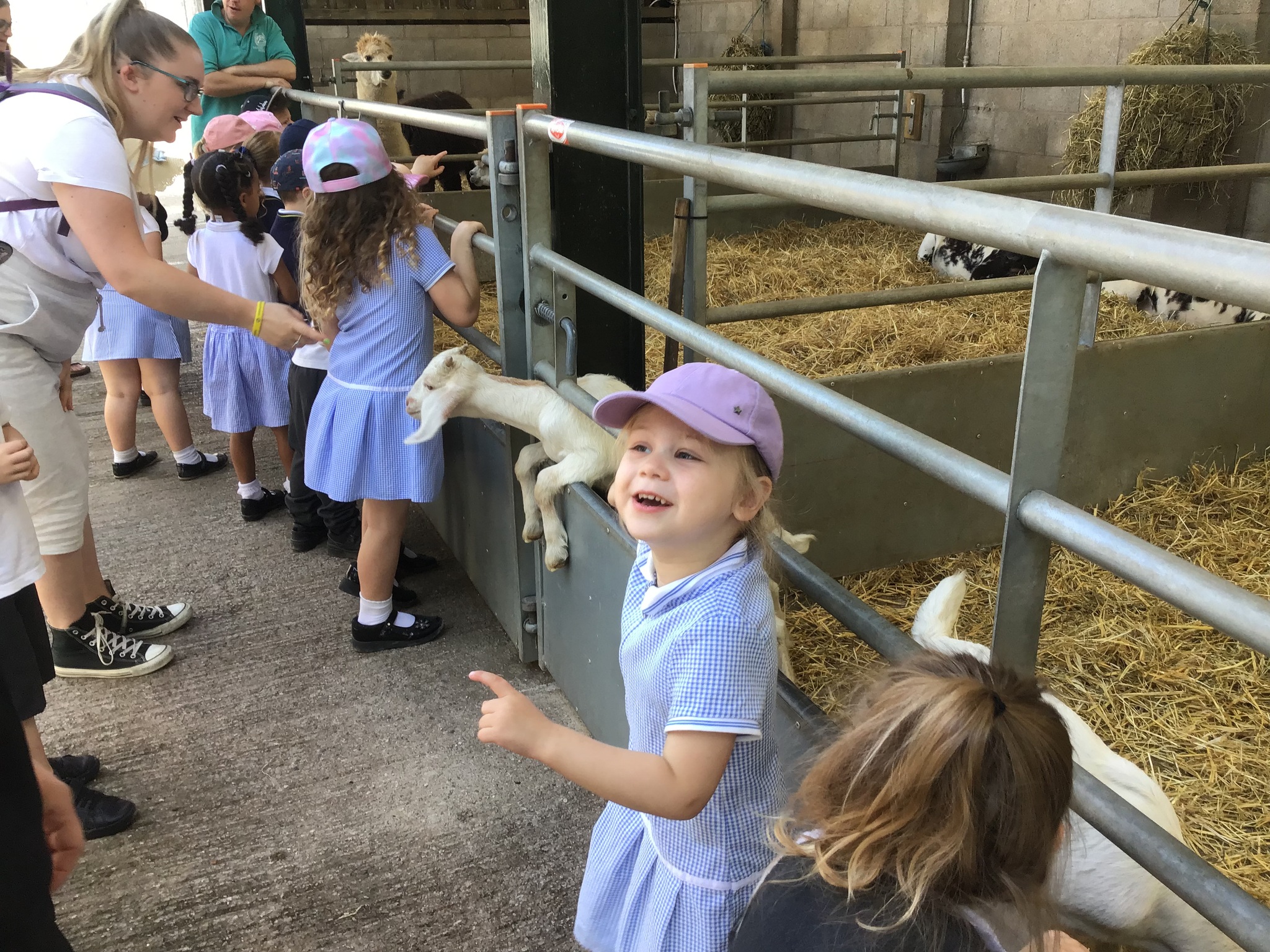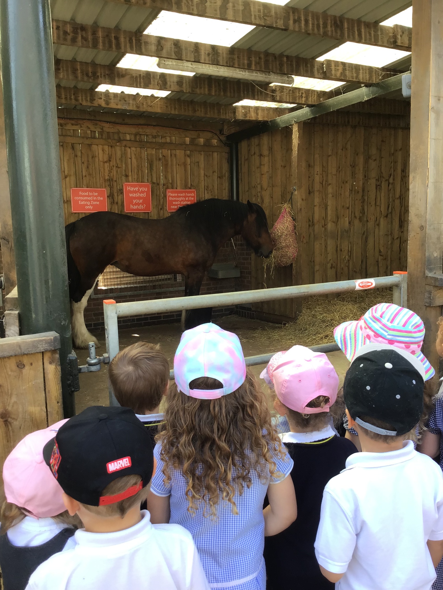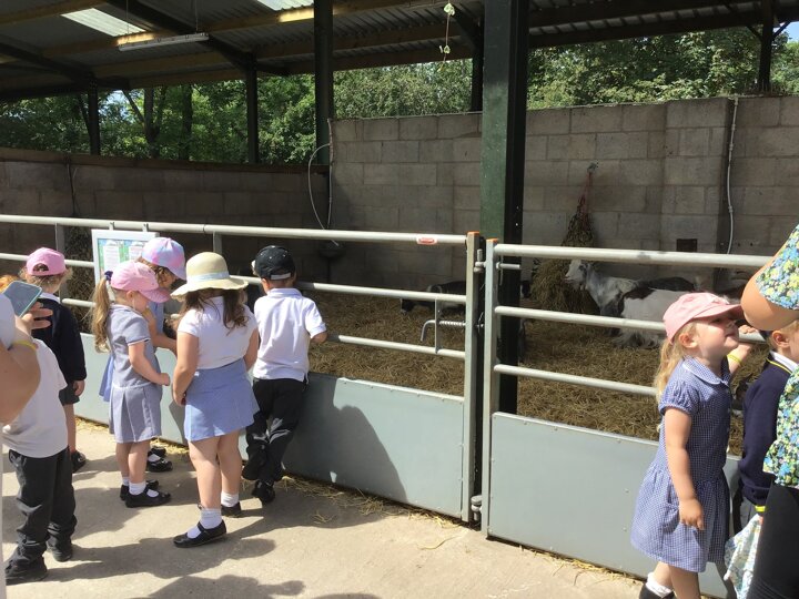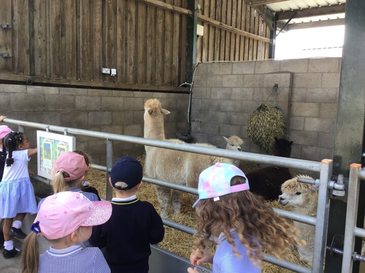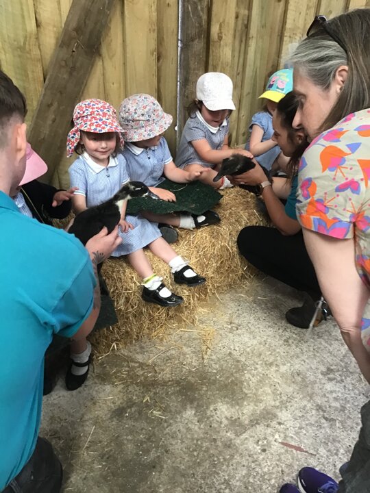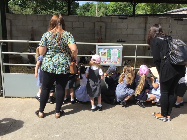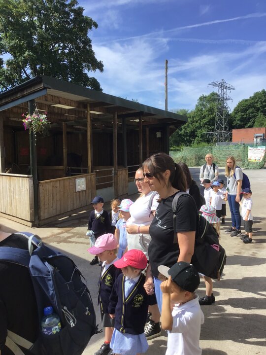 On Tuesday, Nursery went to Reddish Vale farm for our trip. We went on a coach which was very exciting! We split into 2 groups. One group went to see the big animals and one group went to see the small animals. In the big animals, we met: A shire horse called Vera, 3 donkeys, some meerkats, some sheep, goats and cows and some alpacas. We were told all about the animals and the different names for the males and females such as a Nanny, Billy and a kid for a goat. The small animals were a guinea pig, rabbits, chicks and ducklings. They were very cute and everyone had a go at stroking them. We then had a chance to play in the playpark and ate our dinner. Then it was home time. We had a fantastic time, all the children were so well behaved and did Dowson proud. Well done to everyone and thank you to all our parent helpers. A special thanks to Reddish Vale Farm who were excellent with us.