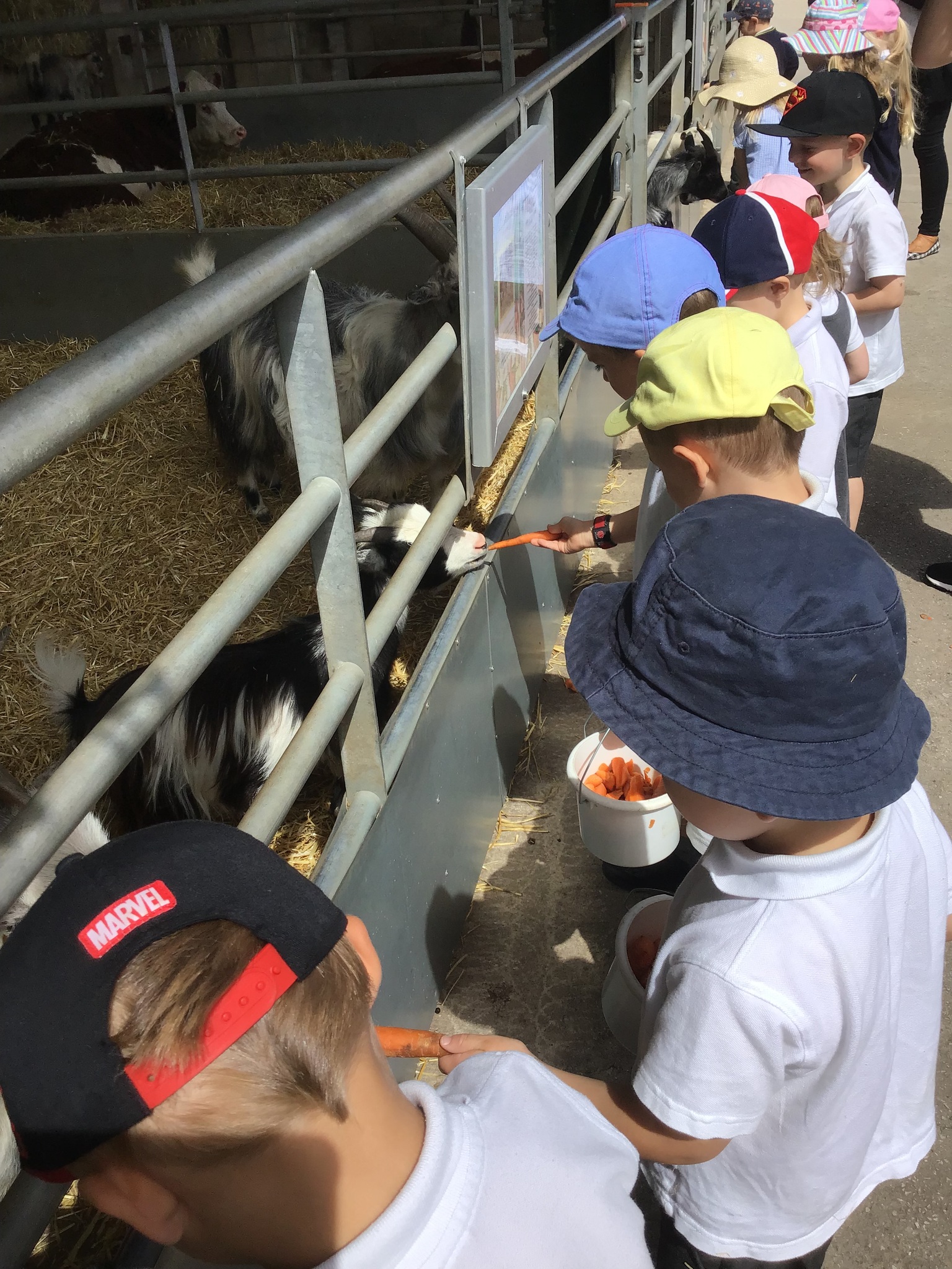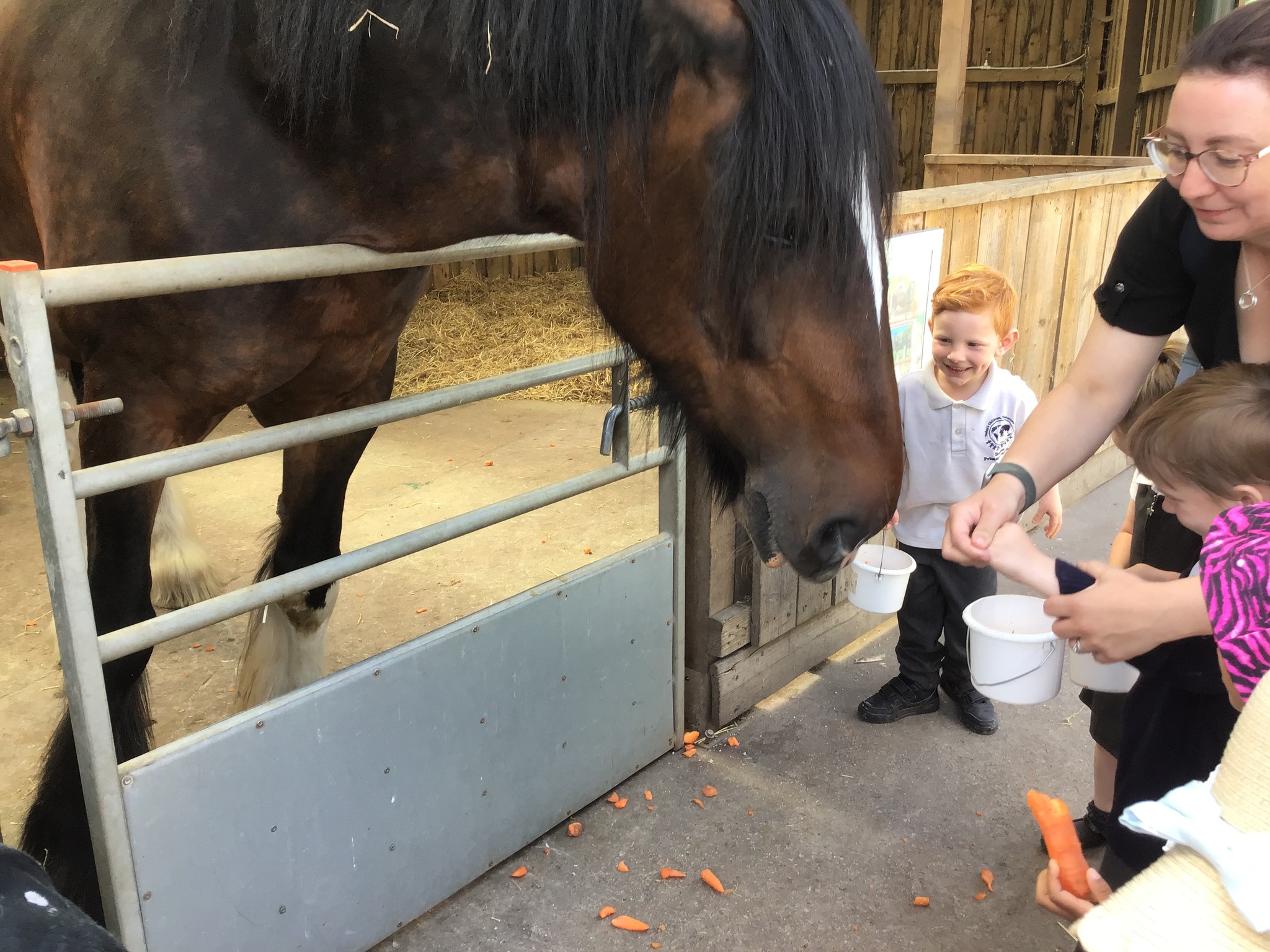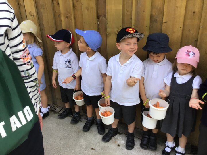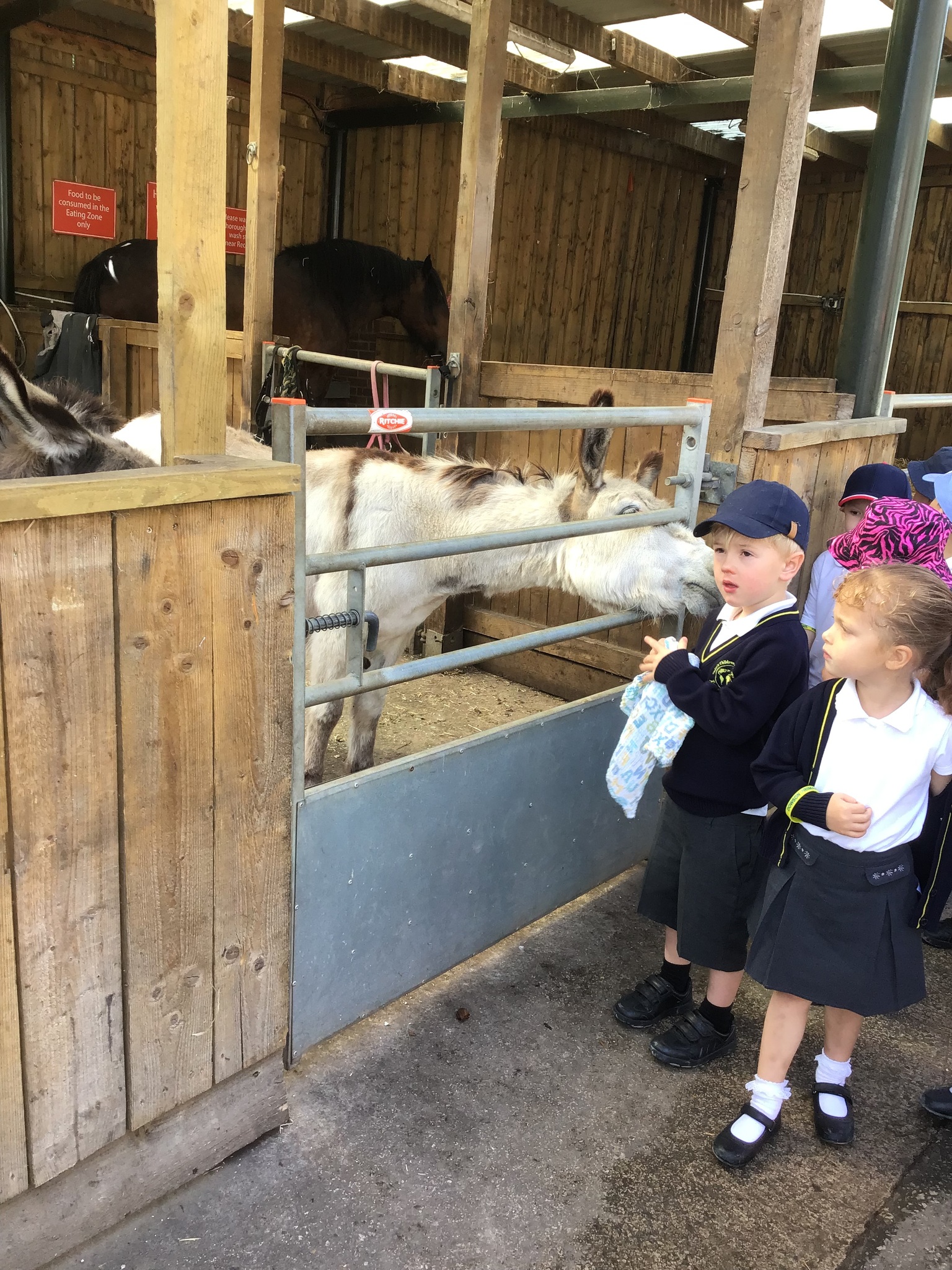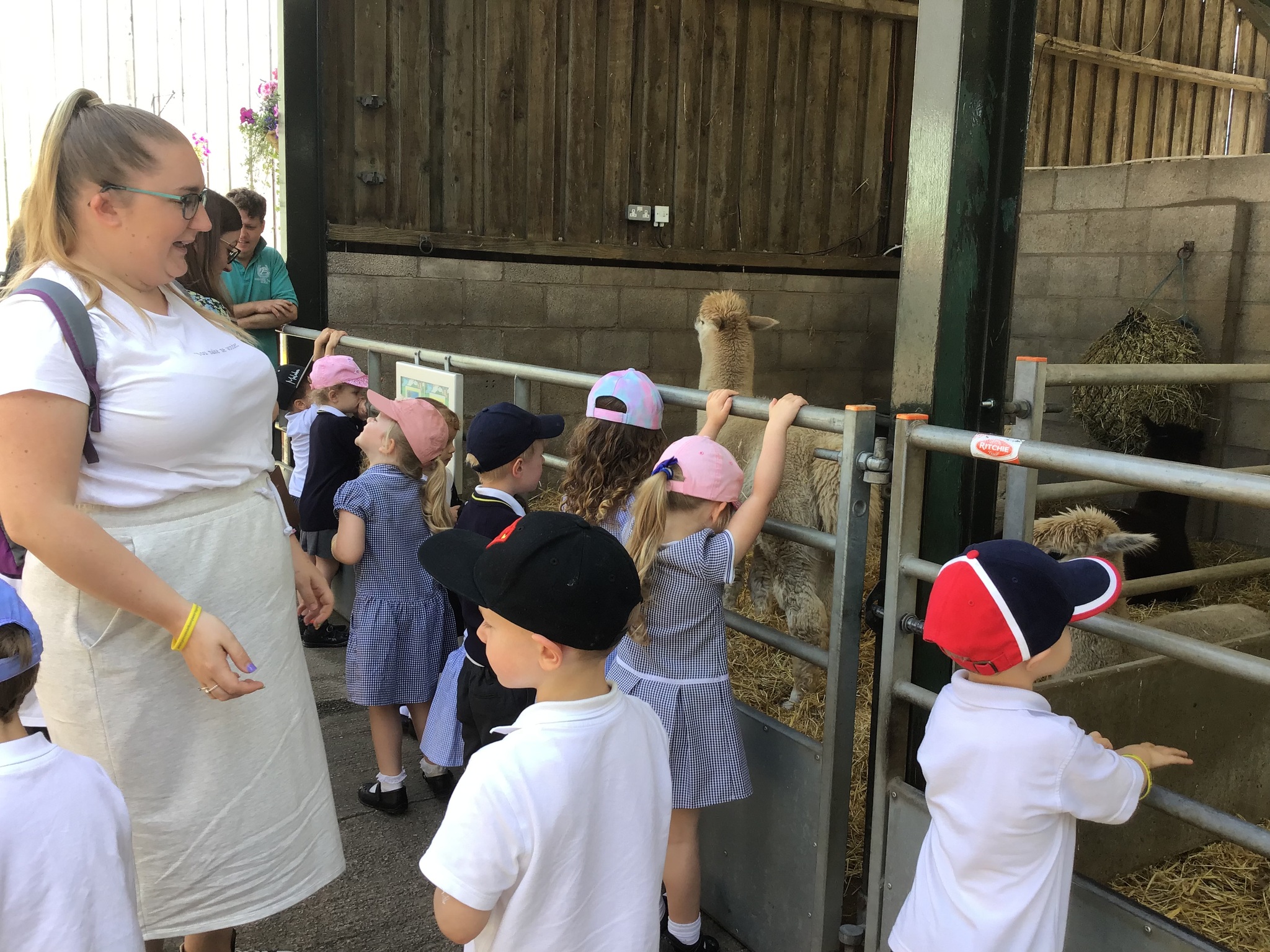 On Tuesday, Nursery went to Reddish Vale farm for our trip. We went on a coach which was very exciting! We split into 2 groups. One group went to see the big animals and one group went to see the small animals. In the big animals, we met: A shire horse called Vera, 3 donkeys, some meerkats, some sheep, goats and cows and some alpacas. We were told all about the animals and the different names for the males and females such as a Nanny, Billy and a kid for a goat. The small animals were a guinea pig, rabbits, chicks and ducklings. They were very cute and everyone had a go at stroking them. We then had a chance to play in the playpark and ate our dinner. Then it was home time. We had a fantastic time, all the children were so well behaved and did Dowson proud. Well done to everyone and thank you to all our parent helpers. A special thanks to Reddish Vale Farm who were excellent with us.