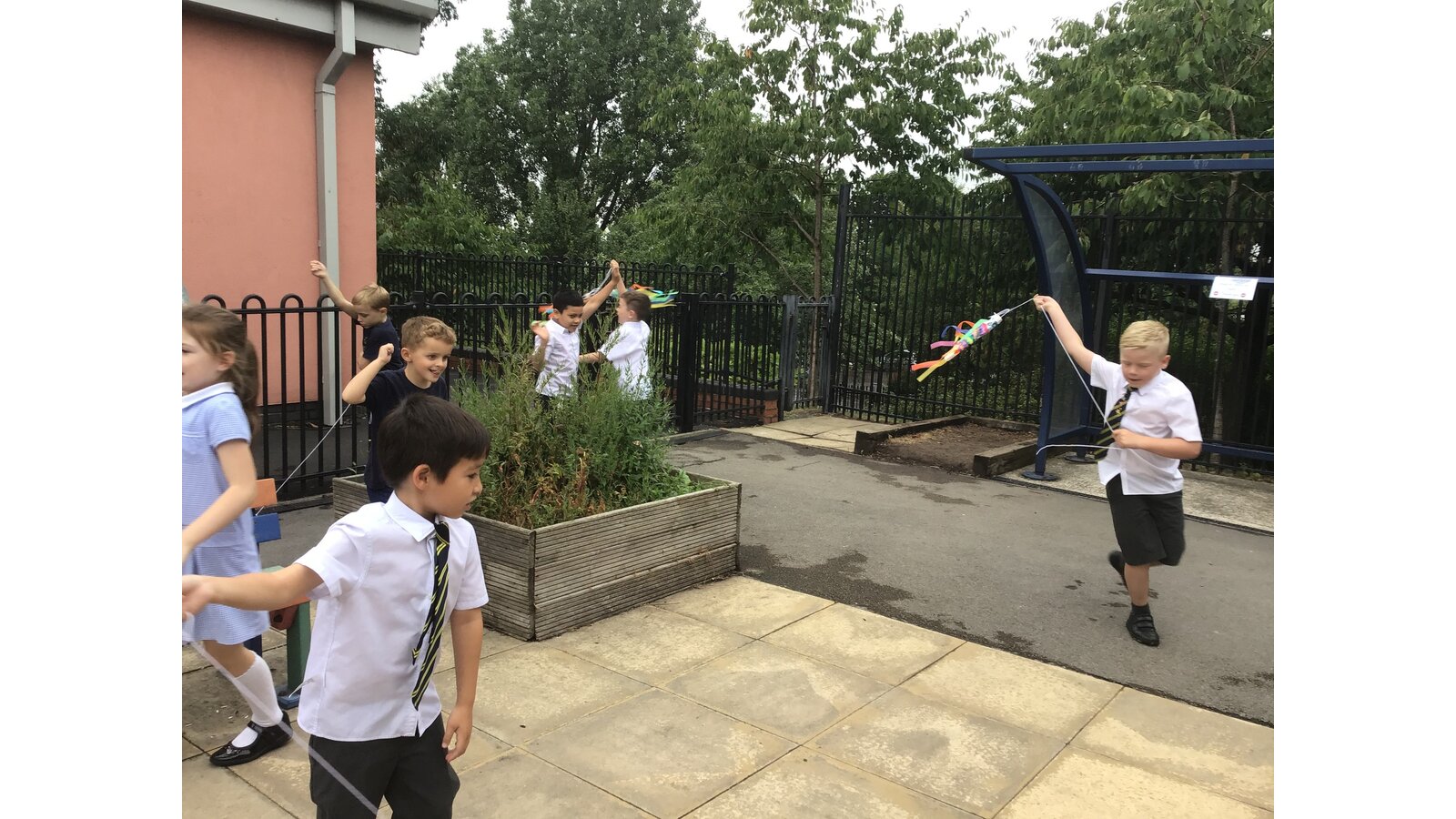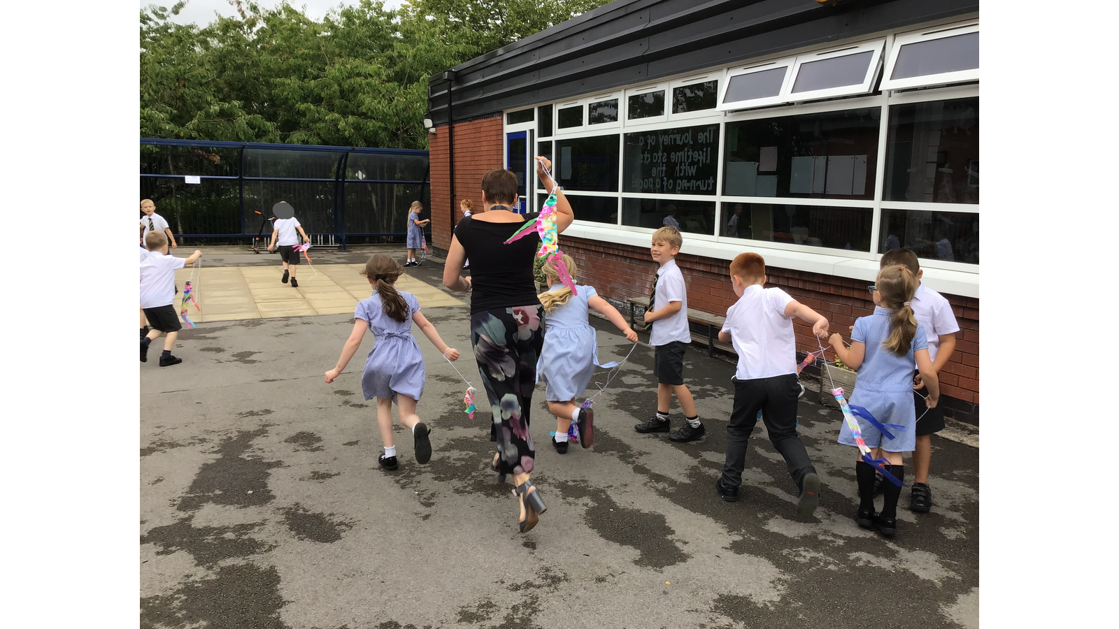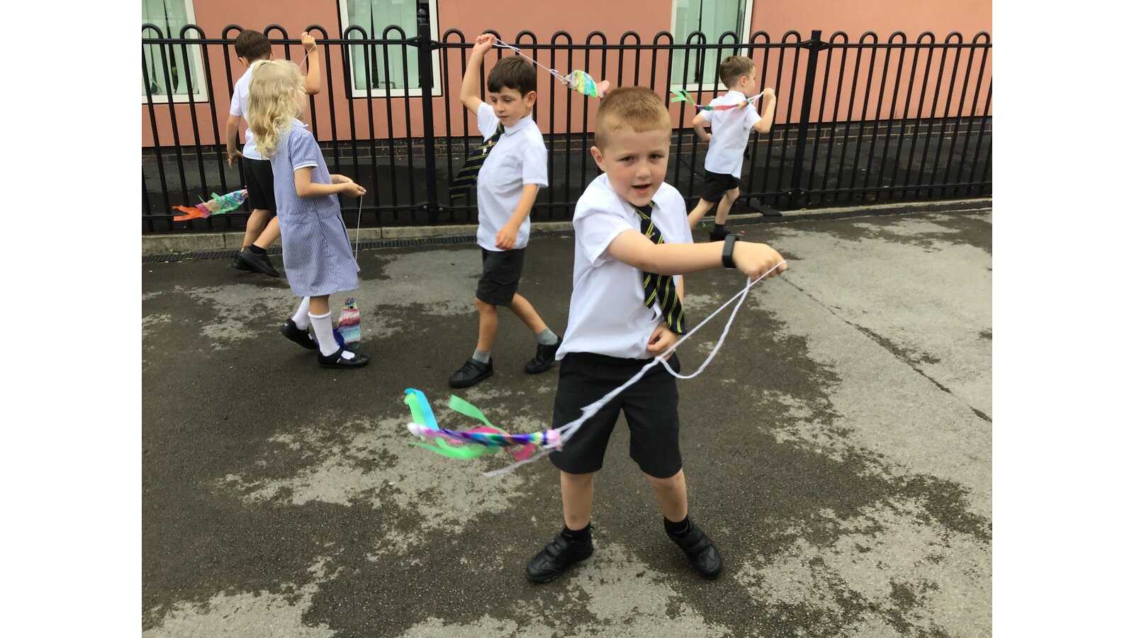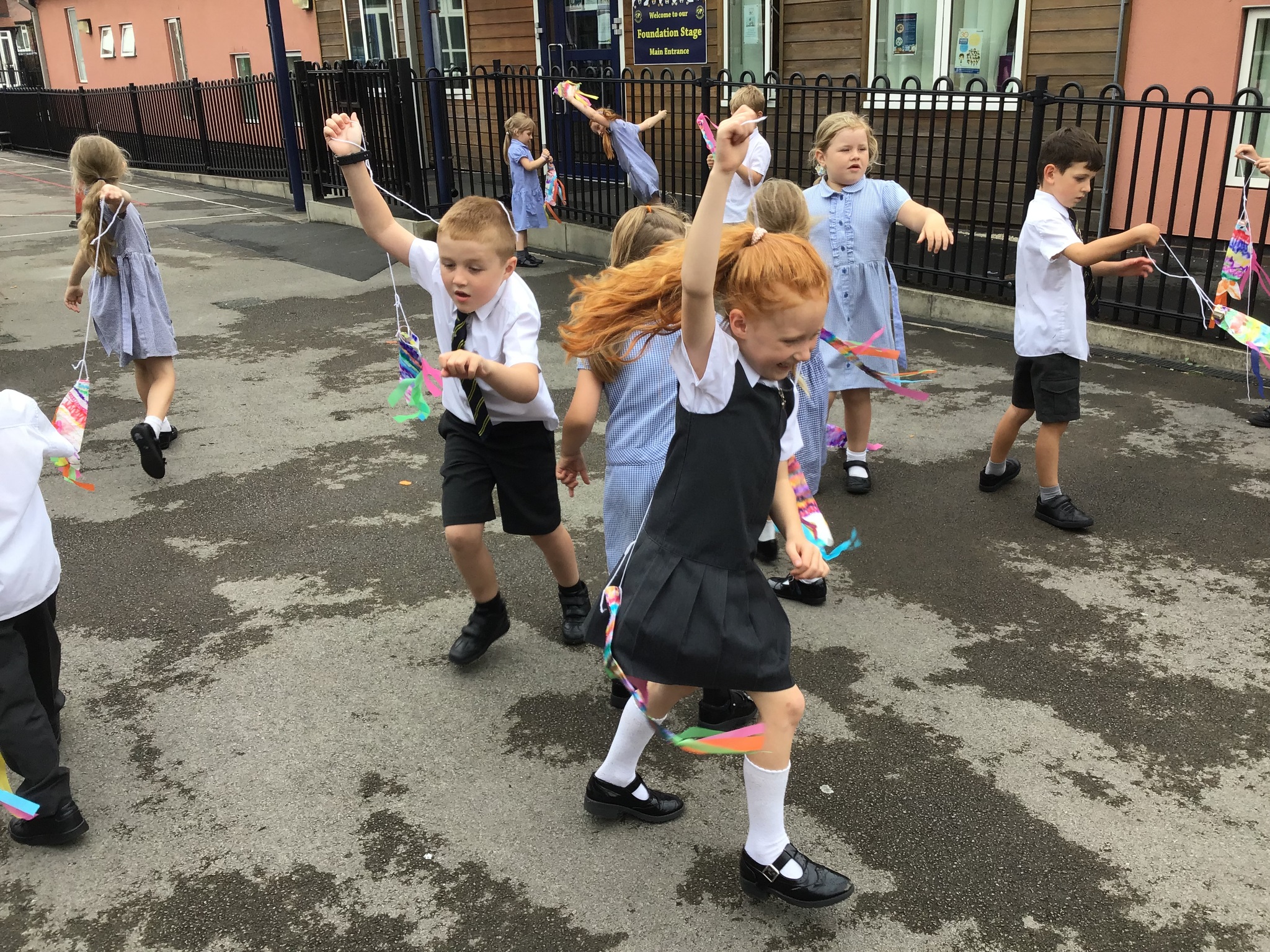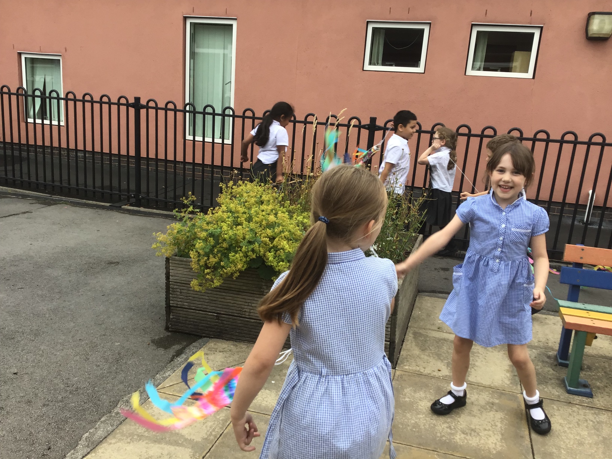 For our Art lesson we made Koinobori kites. We used felt tip pens to draw patterns onto special diffusing paper, we then used water and a paint brush to gently merge the colours together to make the wonderful colours and patterns that you can see. The children then had a little adult help to put the kites together and stick tissue paper on to them. We then went out to fly our kites. It was so much fun!